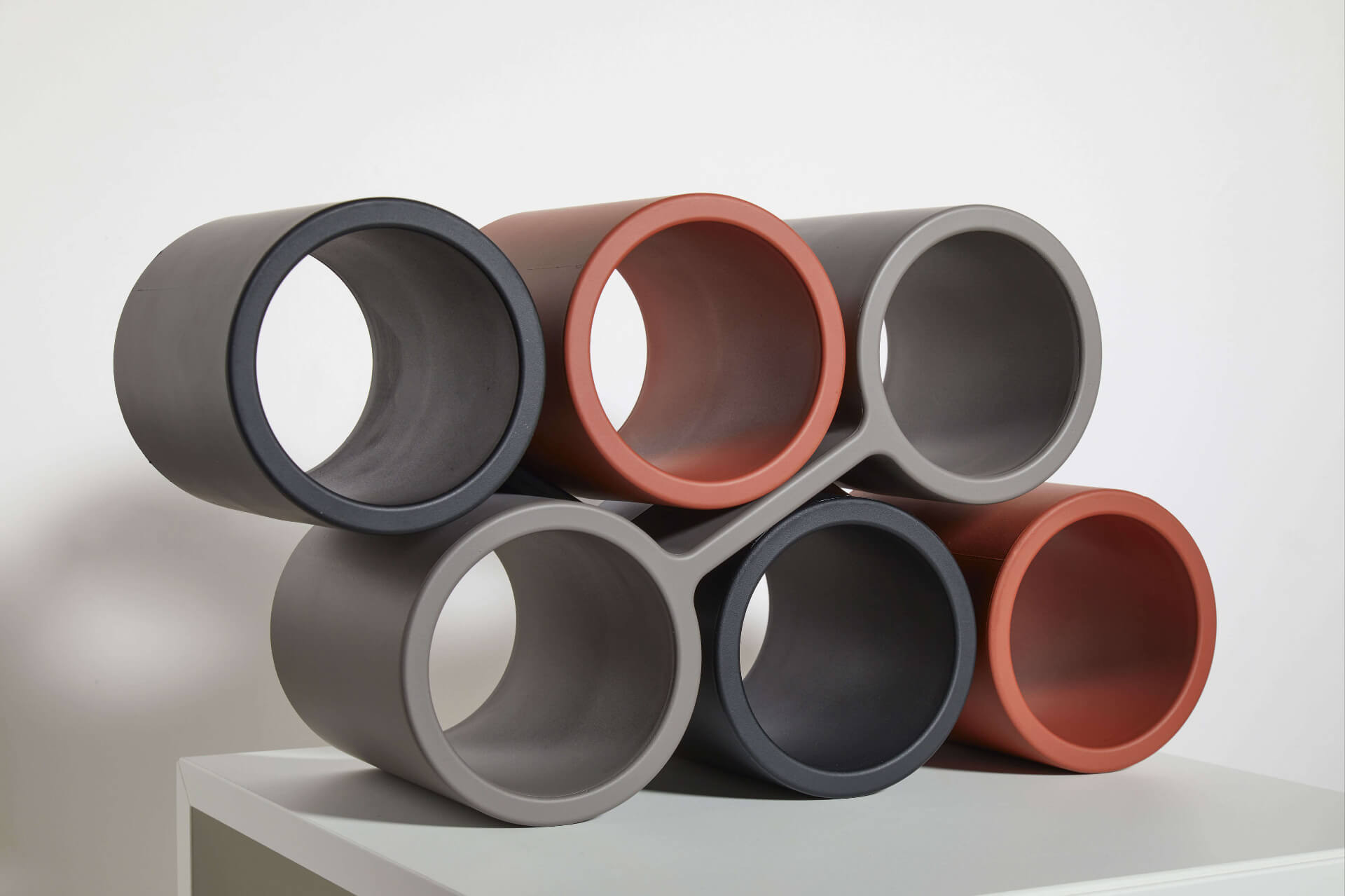 Bigovino è un portabottiglie realizzato in poliuretano integrale morbido e colorato che per sua natura ha anche proprietà termoisolanti.